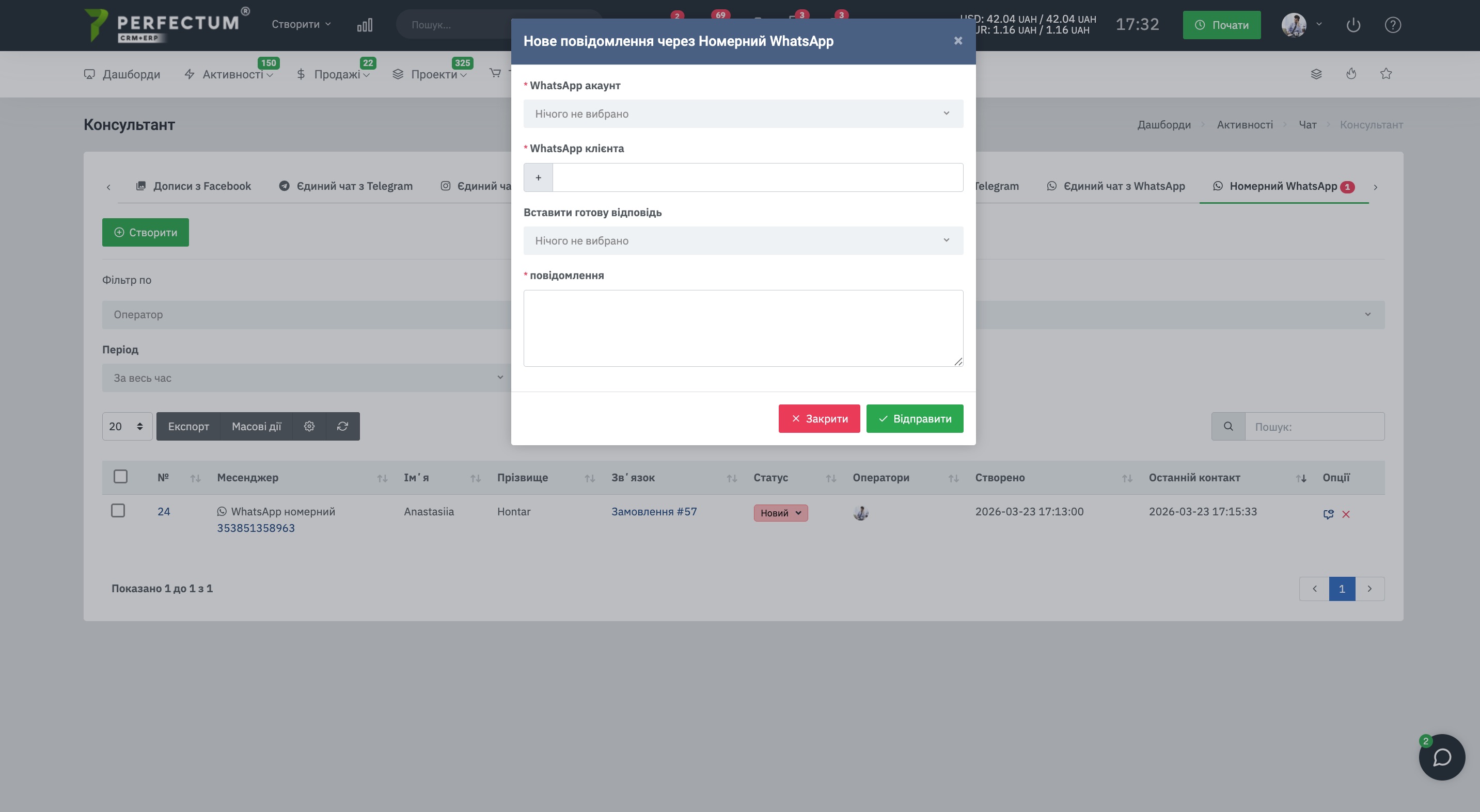 Командой Perfectum CRM+ERP разработан модуль "Номерной WhatsApp", который дает возможность осуществлять коммуникацию с клиентами, используя номер телефона в Telegram.