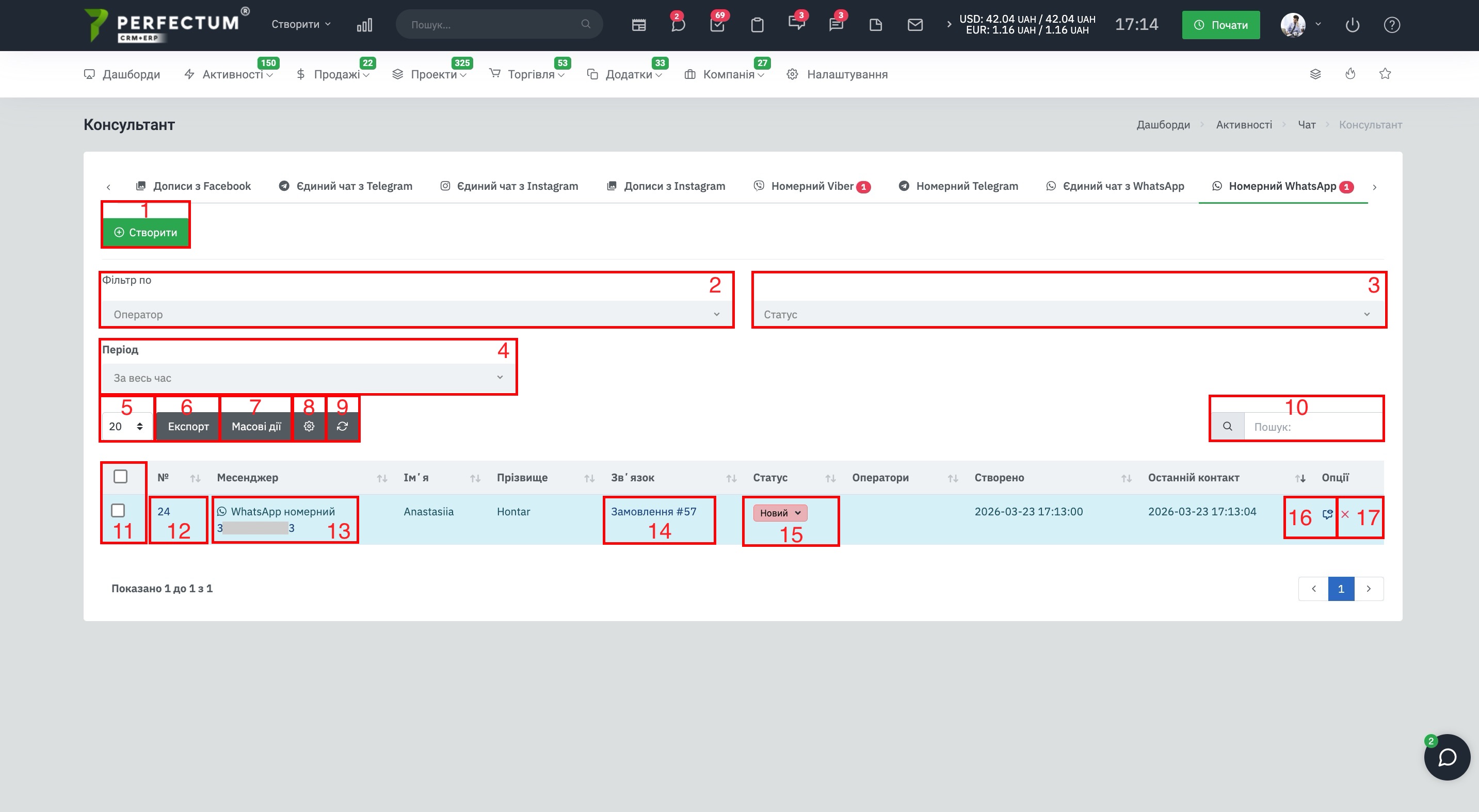 - Номер телефона - указывается автоматически из контакта, либо тот что отправил клиент в чат.