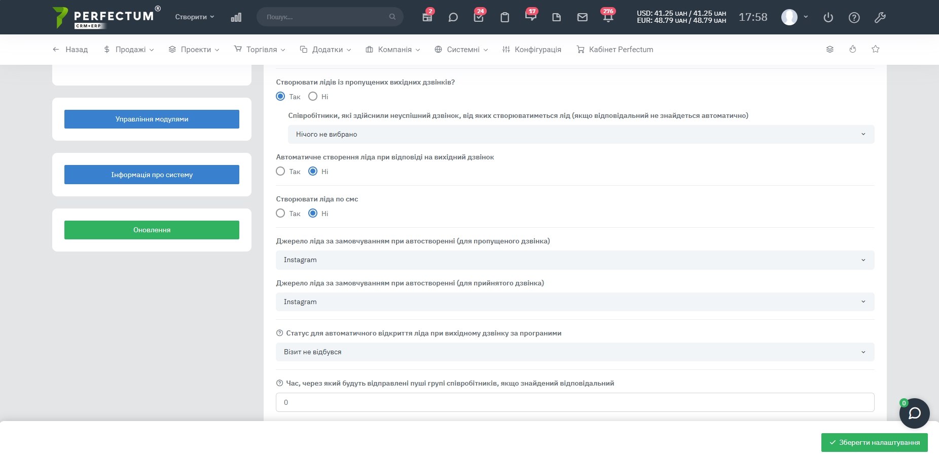 Если Вы выбрали подходящий способ совершения звонков и выполнили предыдущие пункты, то можете принимать входящие и совершать исходящие звонки из Perfectum CRM+ERP.