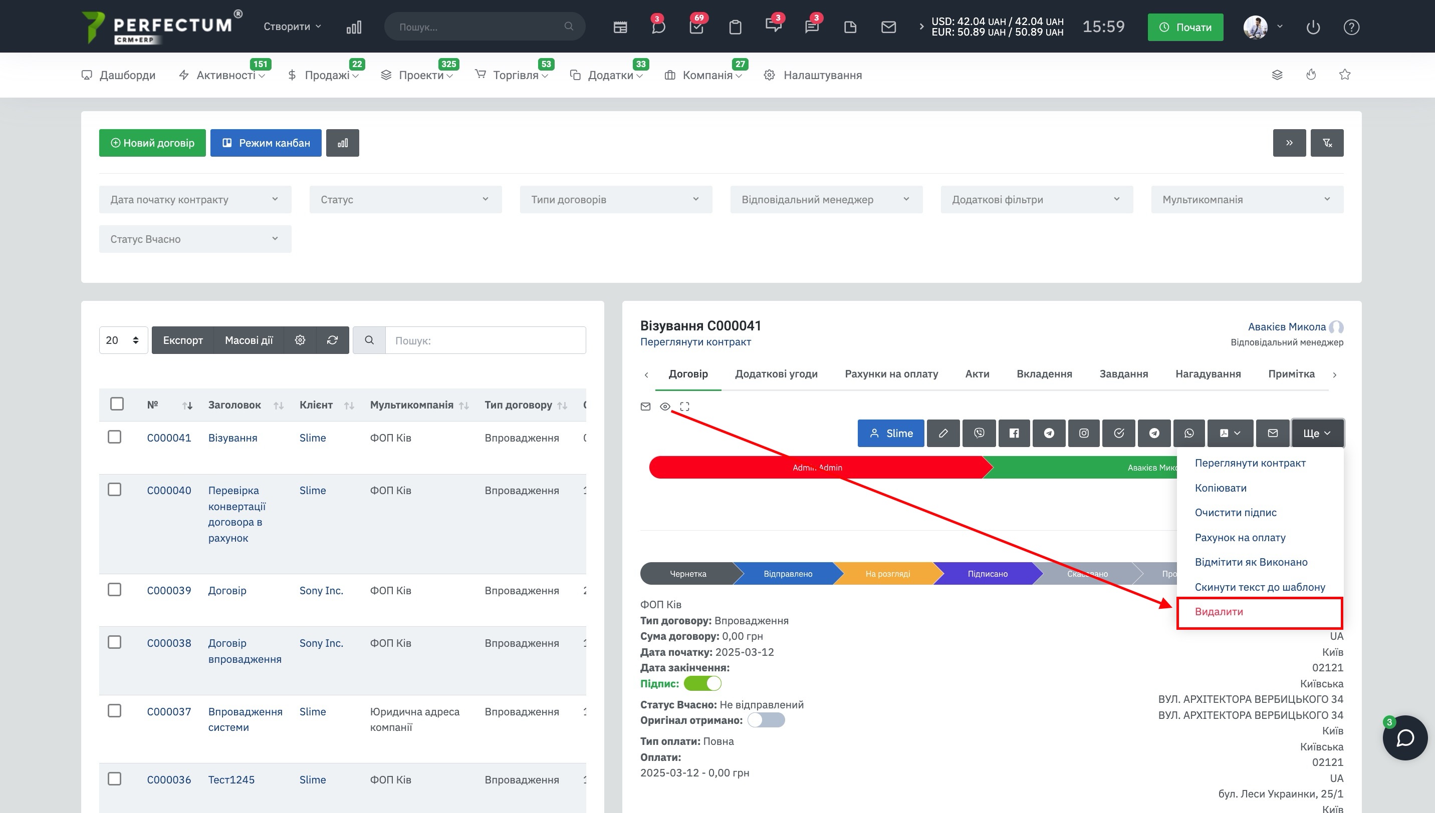 - Изменена логика отображения кнопки удаления в договорах: теперь она выделена красным цветом, как и в счетах.