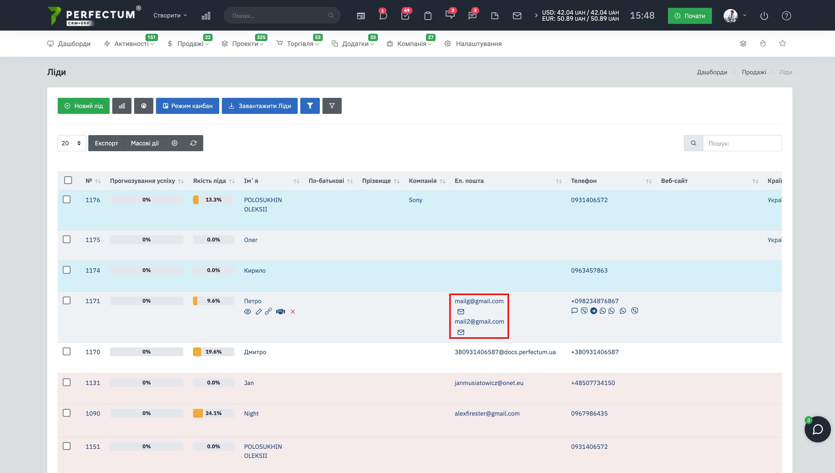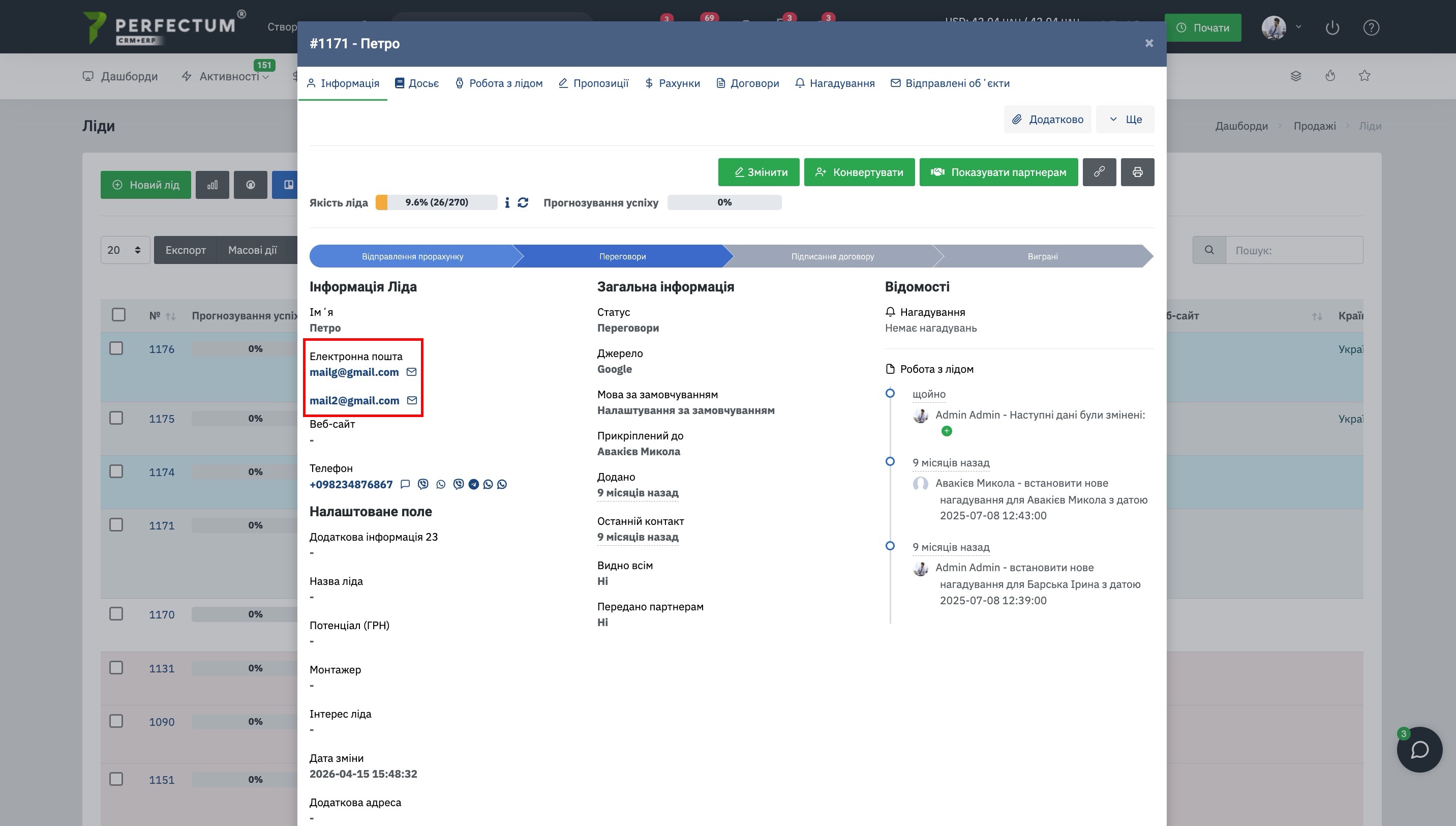 - Добавлена новая возможность отображать дополнительную электронную почту в карточке лида в режиме просмотра.
