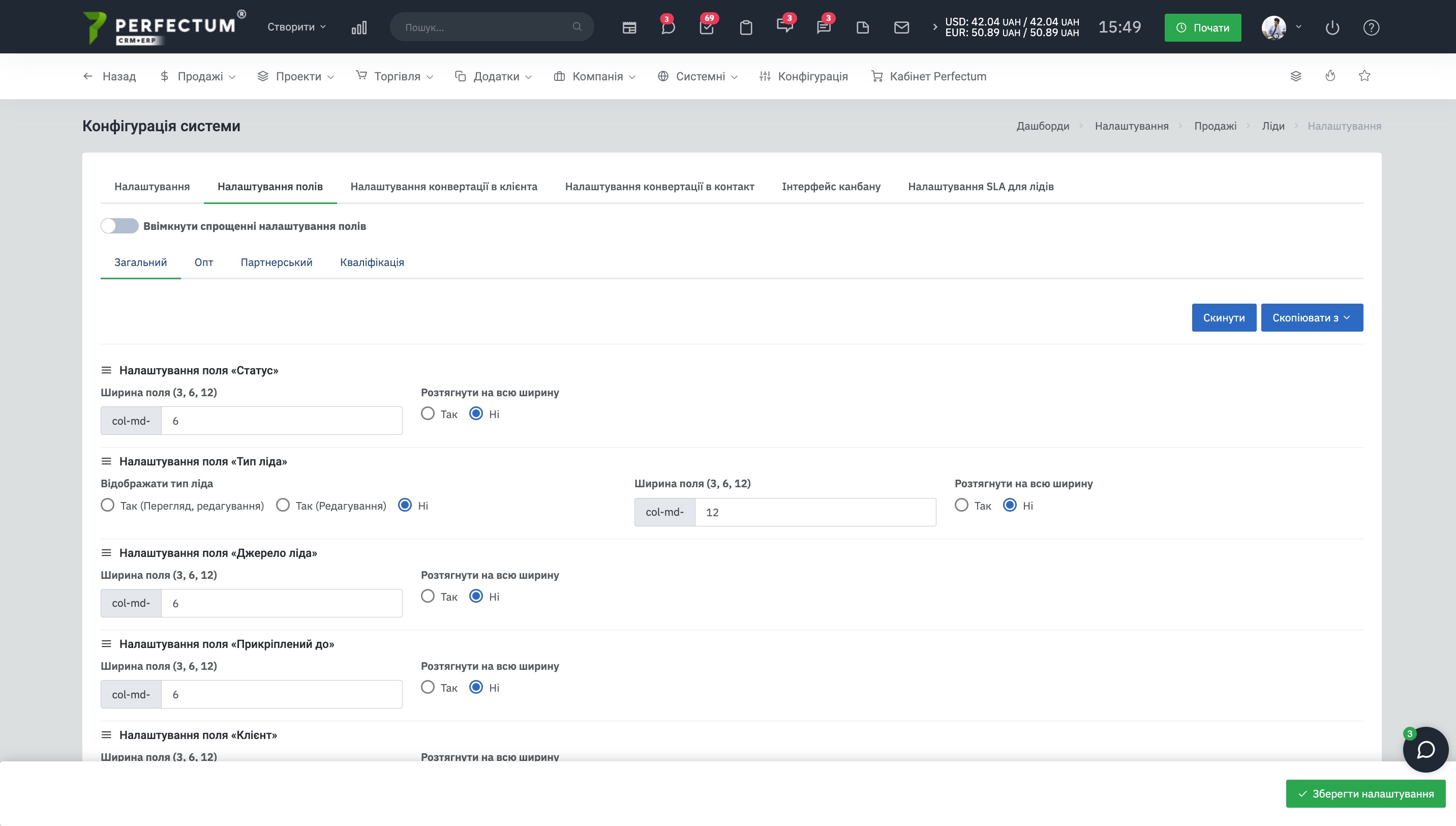 - Настройки полей лидов, оптимизирован внешний вид и последовательность их вывода.