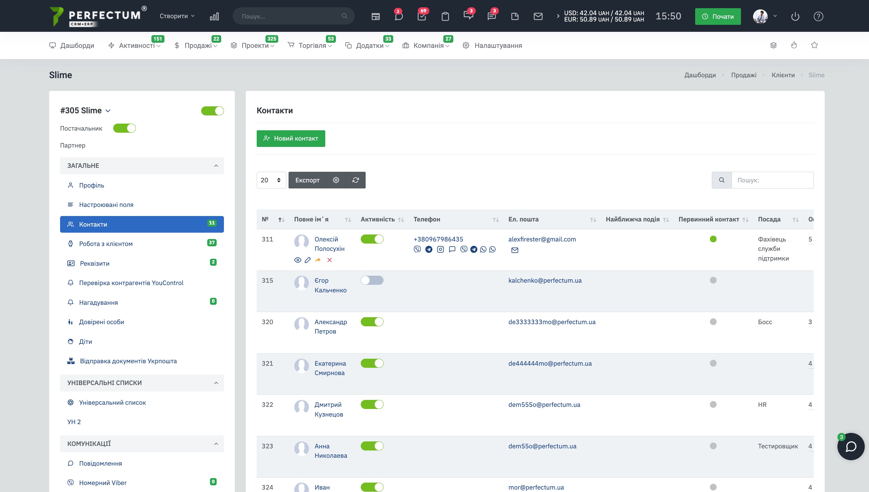 - Изменено отображение колонок по умолчанию в блоке контактов карточки клиента.