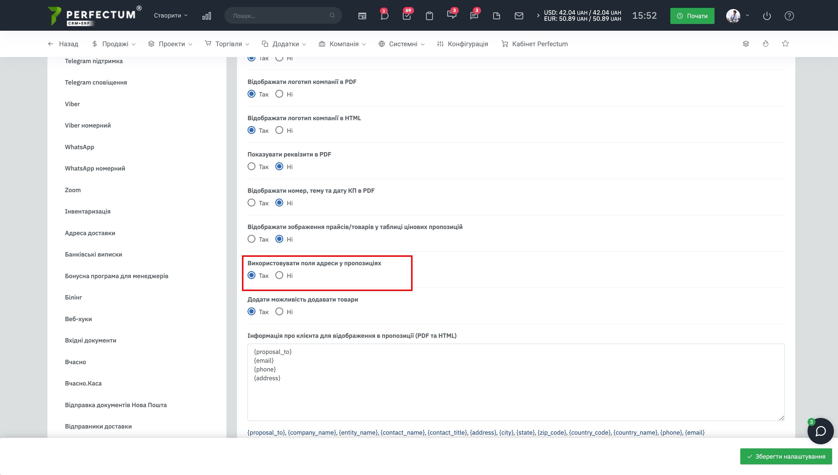- Добавлена новая возможность отключать в коммерческом предложении поля типа адреса и индекса.