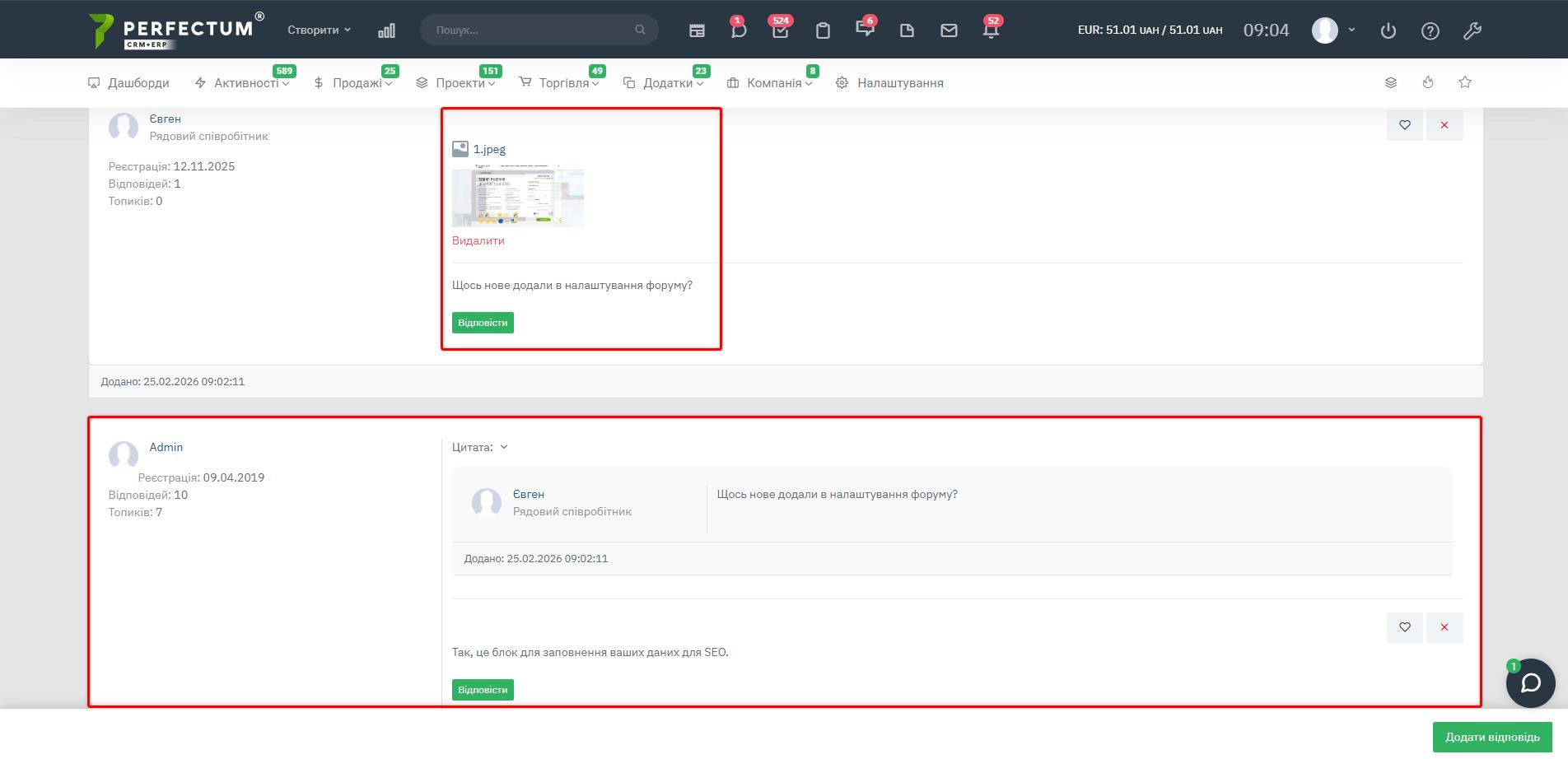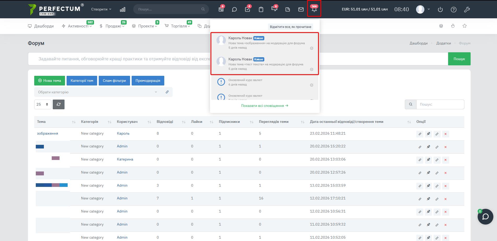 Командой Perfectum CRM + ERP выпущена обновленная версия модуля "Форум" 1.8. В обновлении было выполнено ряд чек-боксов и улучшений.