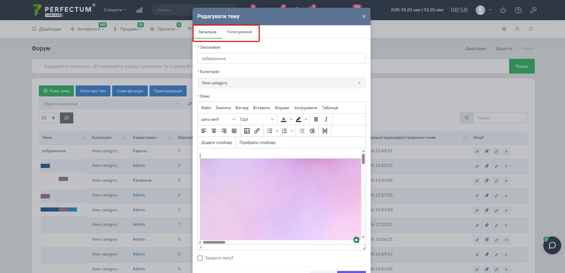 - Оптимизировано отображение вкладок "Общее" и "Голосование" при редактировании тем в мобильной версии системы.