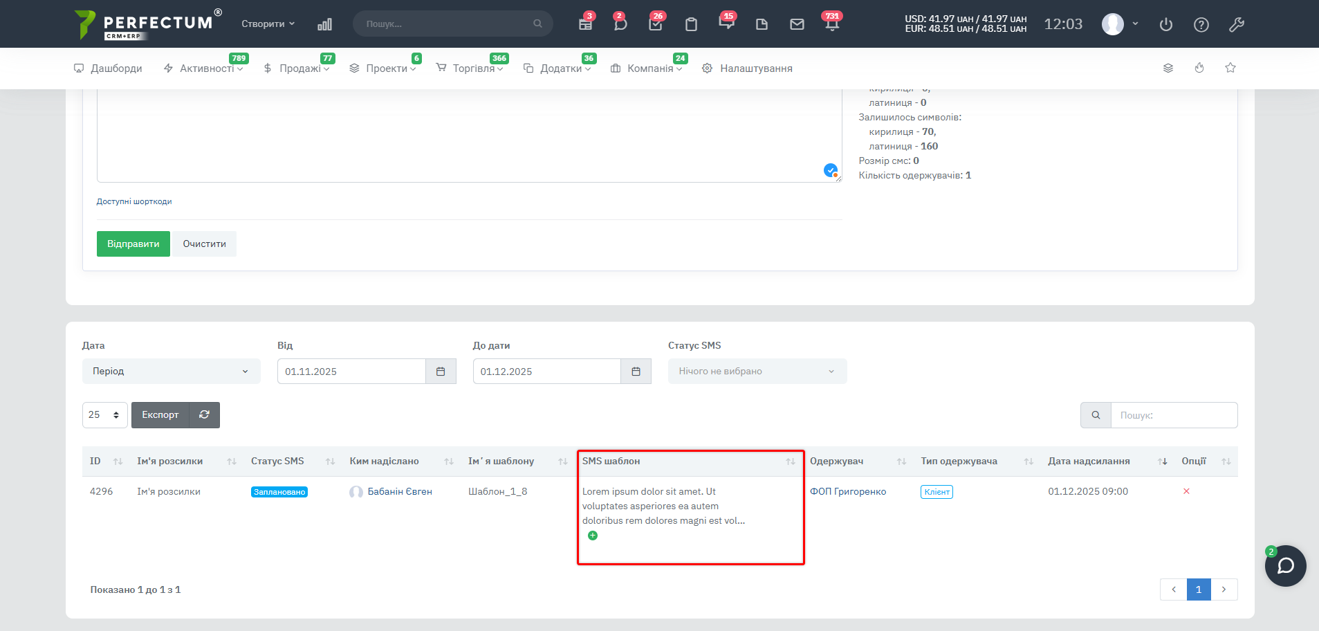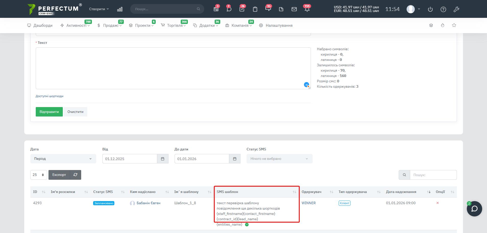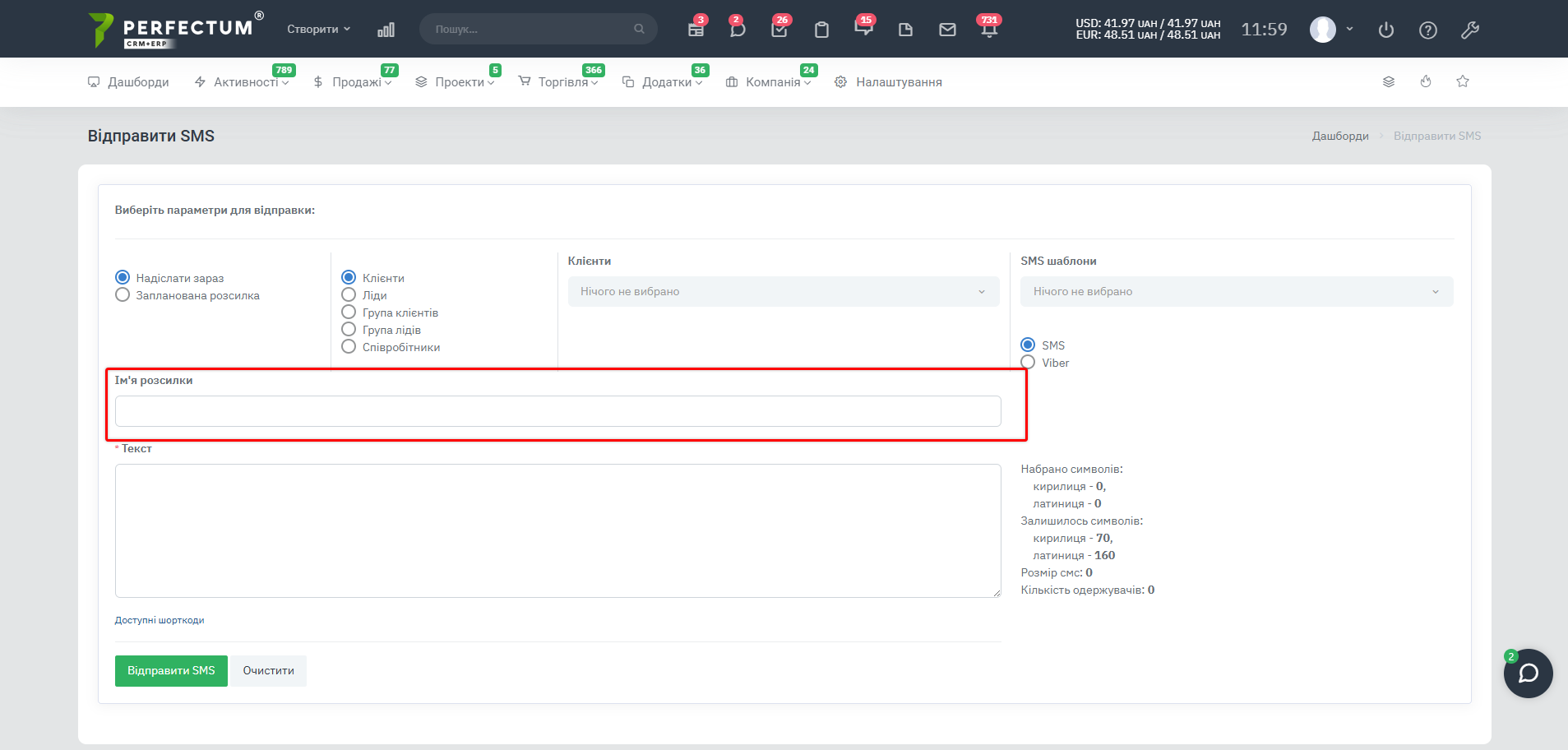 Командой Perfectum CRM + ERP выпущена обновленная версия модуля "SMS-рассылки" 1.8. В обновлении было выполнено ряд чек-боксов и улучшений.