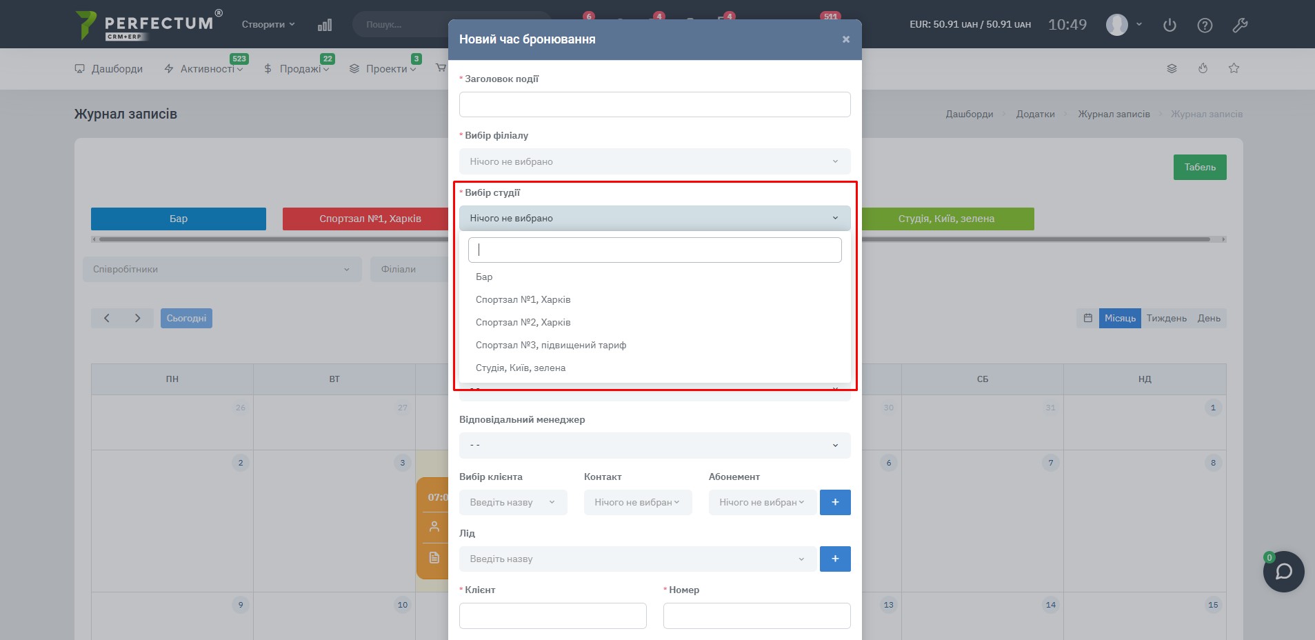 - Откорректировано отображение списка доступных студий для выбора при создании записи в модуле.