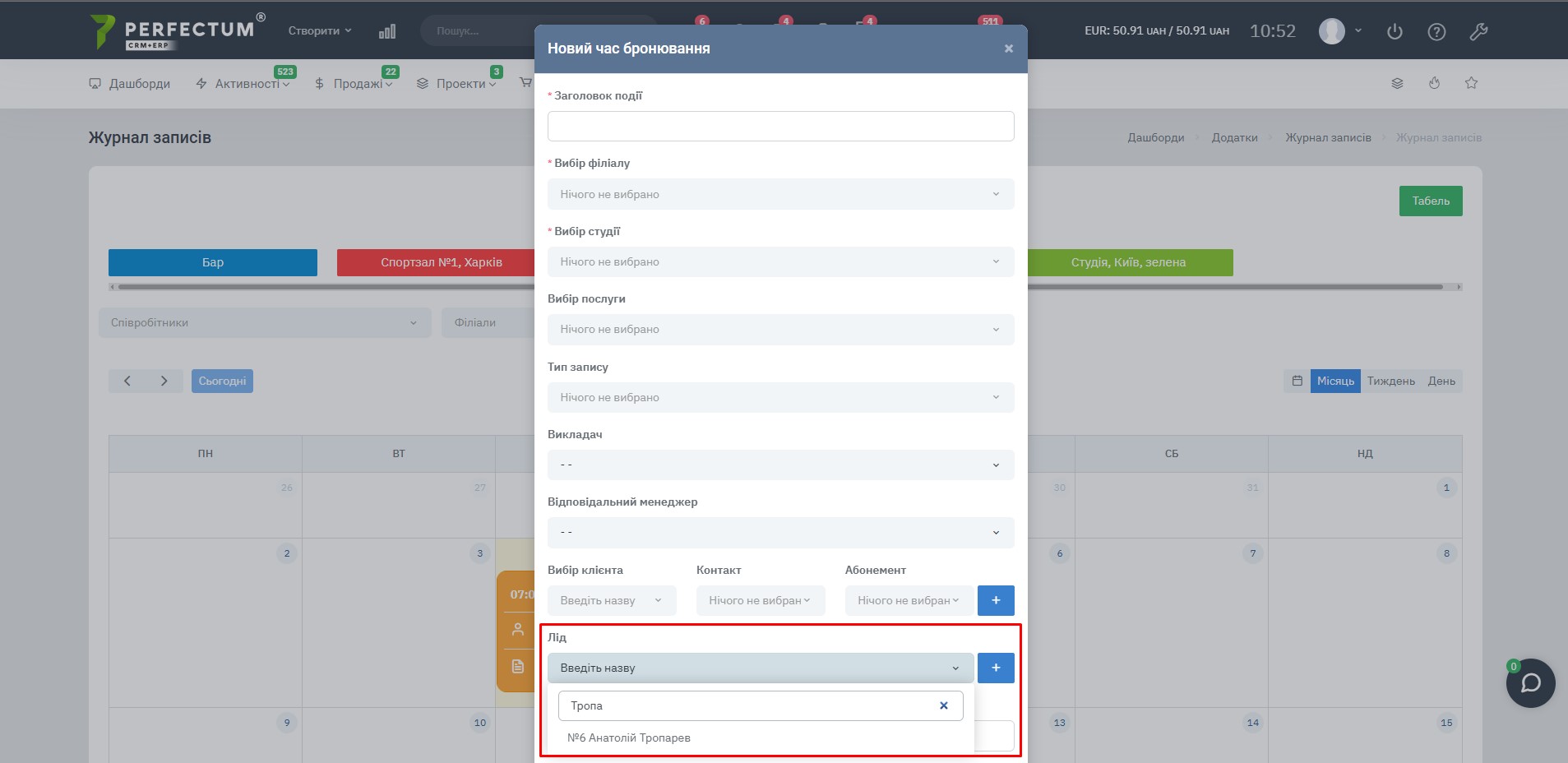 - Откорректирован поиск и отображение лидов в карте создания события в Журнале записи.