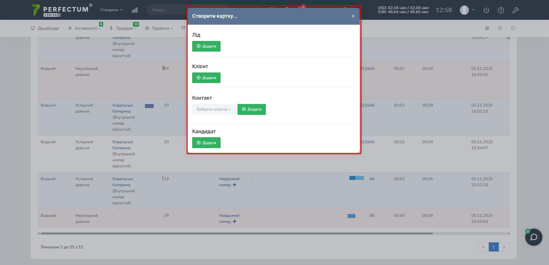 - Добавлено возможность создавать контакты, лиды, клиентов, как в других модулях телефонии.