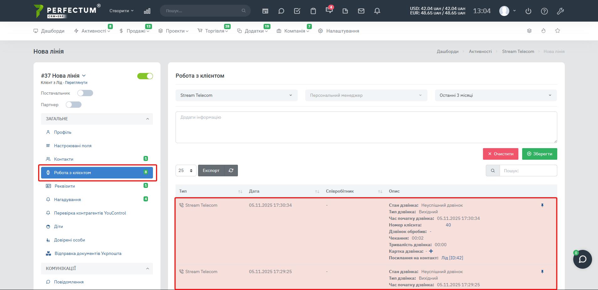 - В истории звонков добавлена колонка “Связь с клиентом”.