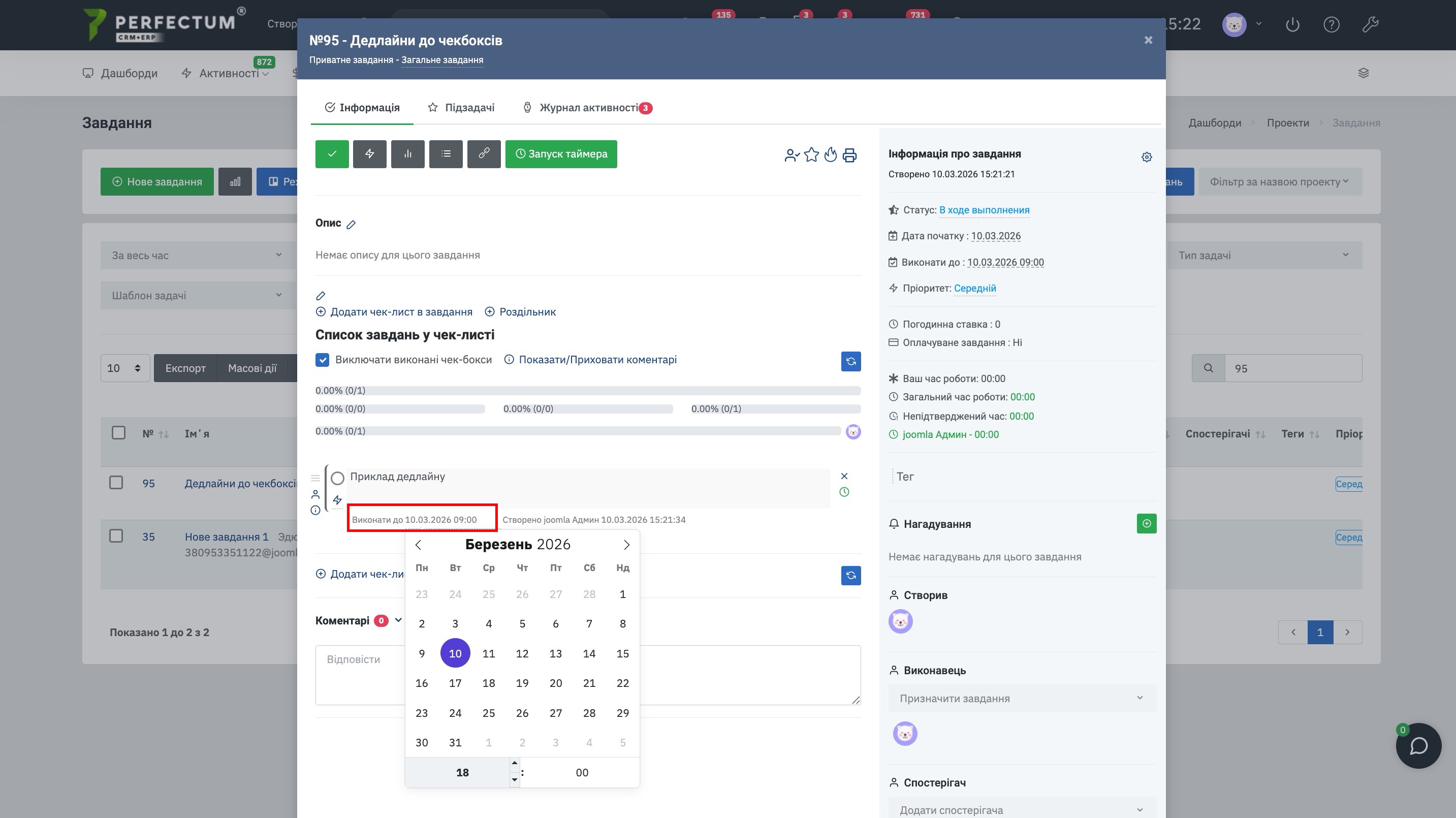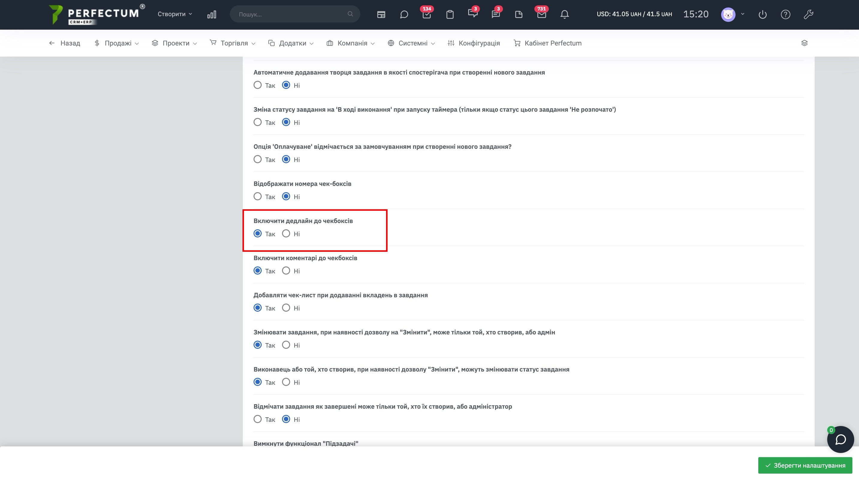 - Додано нову можливість включити в налаштуваннях вказівку дедлайну виконання в чекбоксі завдання з перевіркою, щоб він не перевищував дедлайн самої задачі.