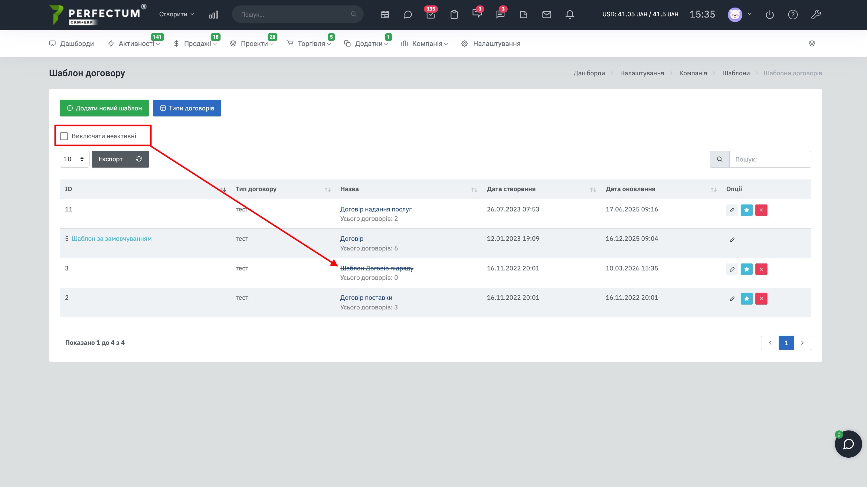 - Додано нову можливість приховувати відключені шаблони договорів за допомогою опції "Не виводити відключені договори".