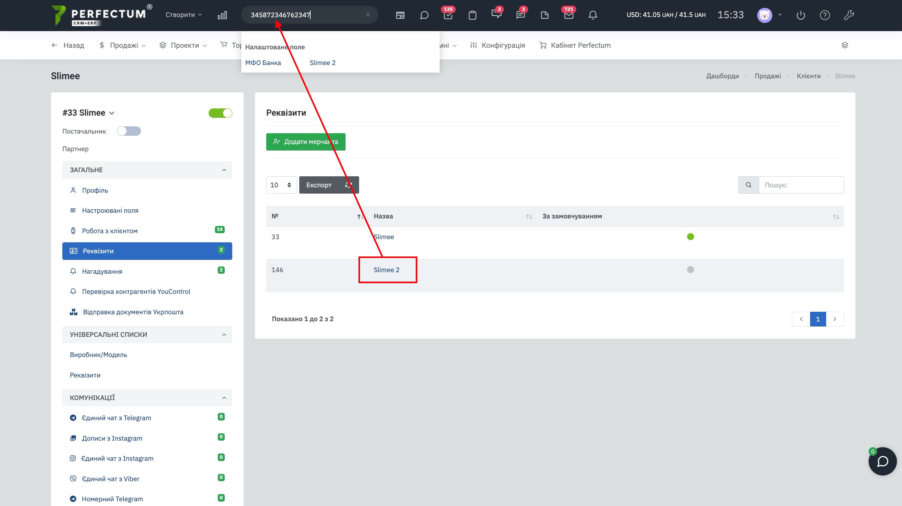 - Додано можливість пошуку за додатковими реквізитами клієнта.