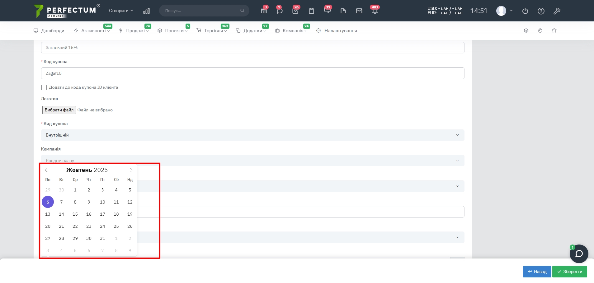 Командою Perfectum CRM + ERP випущено оновлену версію модуля "Купон" 1.6. В оновленні було виконано 6 чек-боксів та покращень.