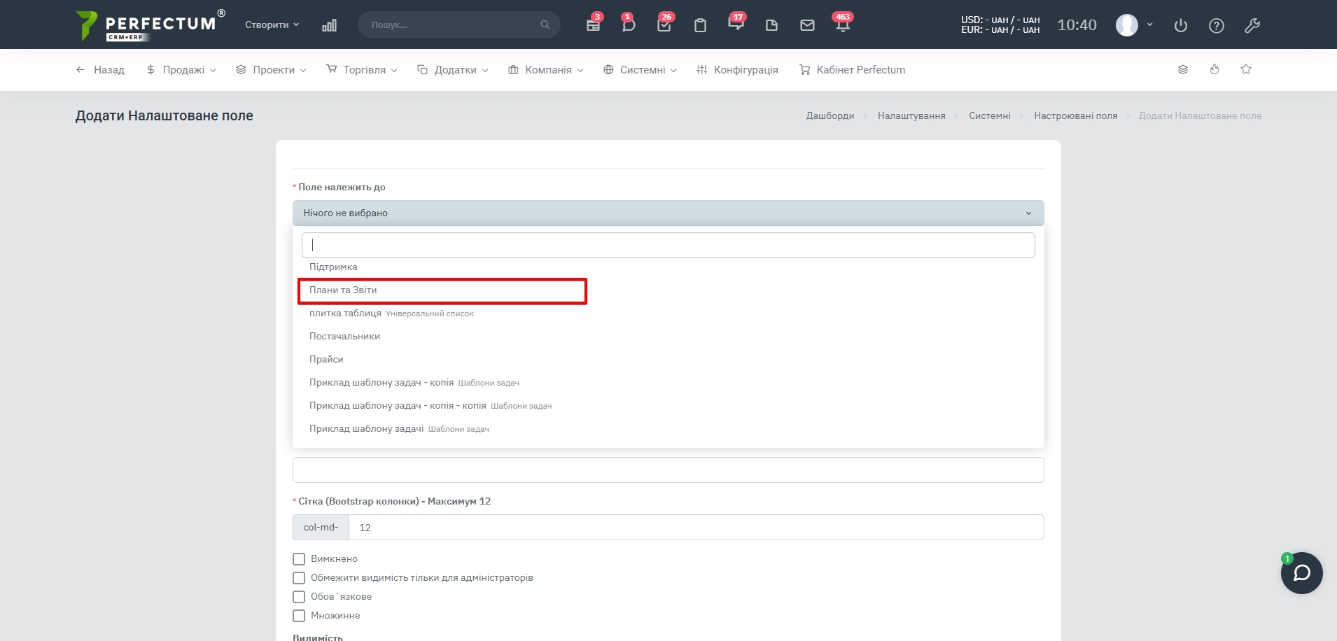 - Оптимізовано збереження та відображення налаштовуваних полів, доданих до модуля “Плани і звіти”.