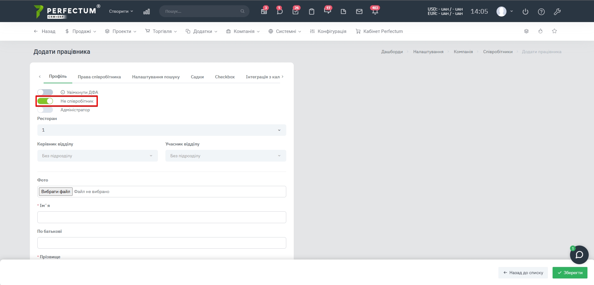- Вимкнено створення планів та звітів для ролі “Не співробітник” в системі.