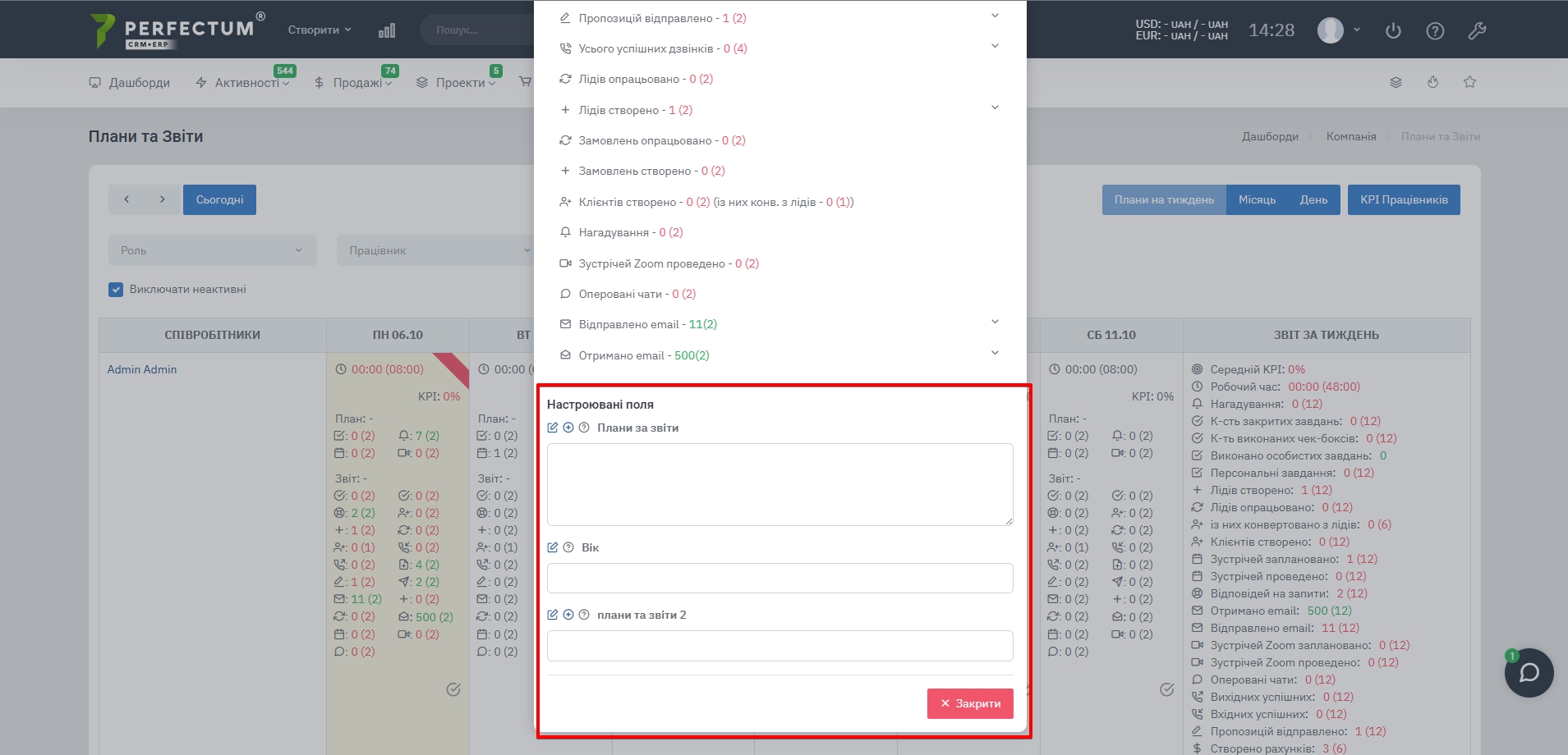 Командою Perfectum CRM + ERP випущено оновлену версію модуля "Плани та Звіти" 3.6. В оновленні було виконано 16 чек-боксів та покращень.