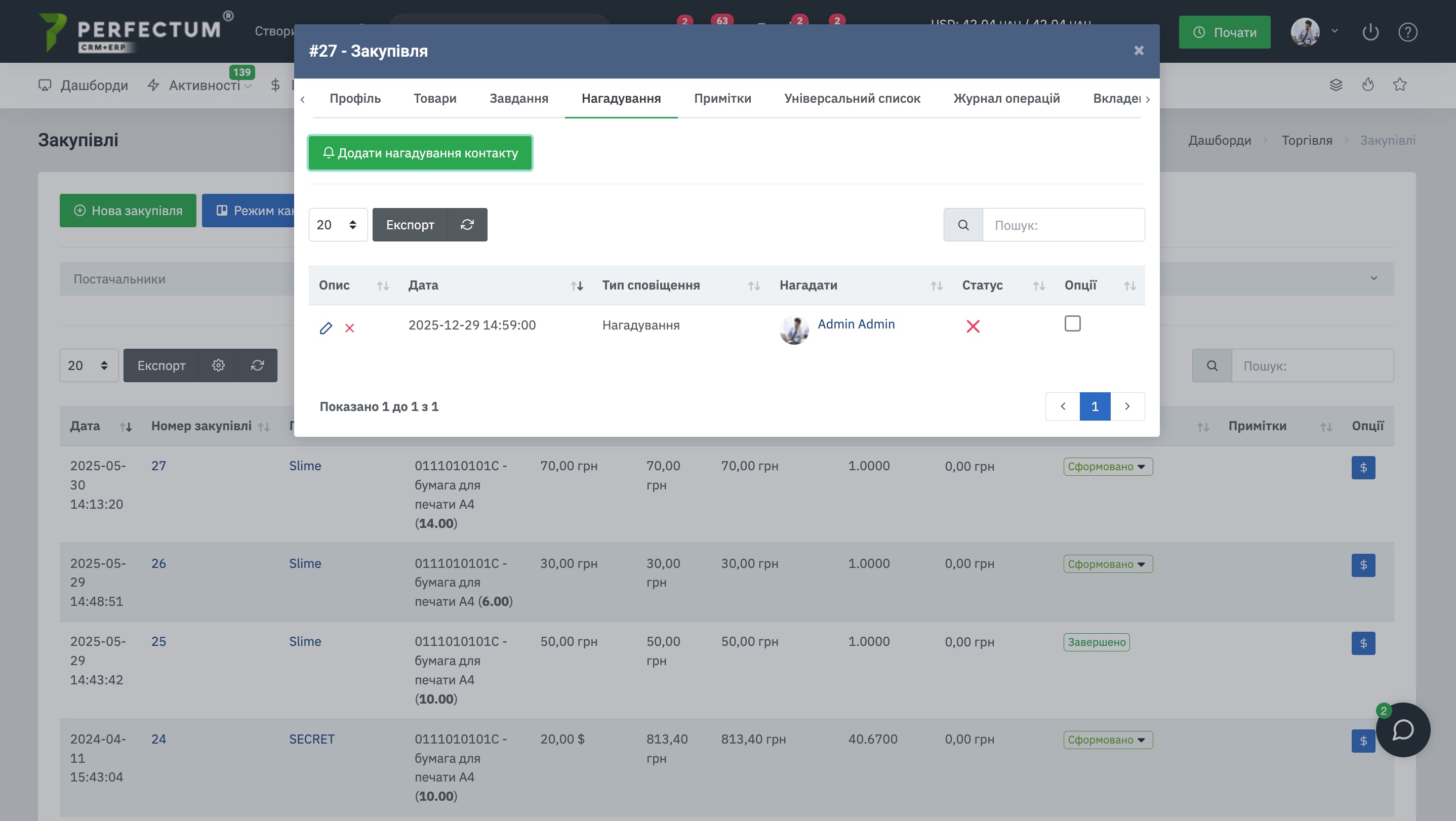 Додано нову можливість створювати нагадування, пов'язані із закупівлею.