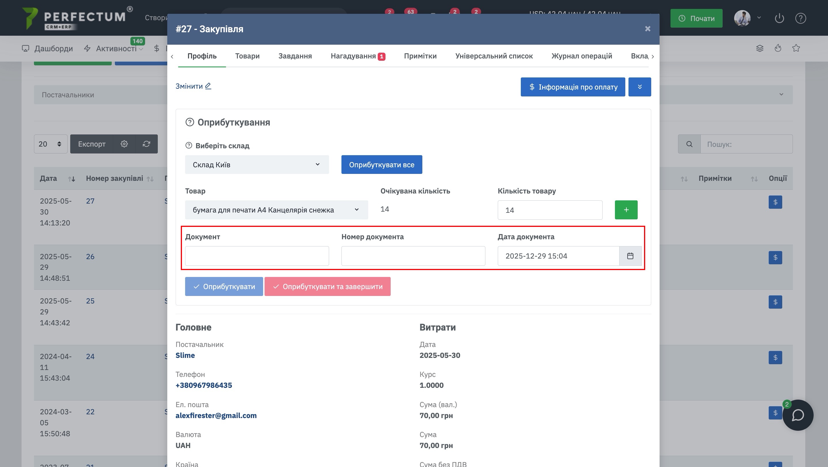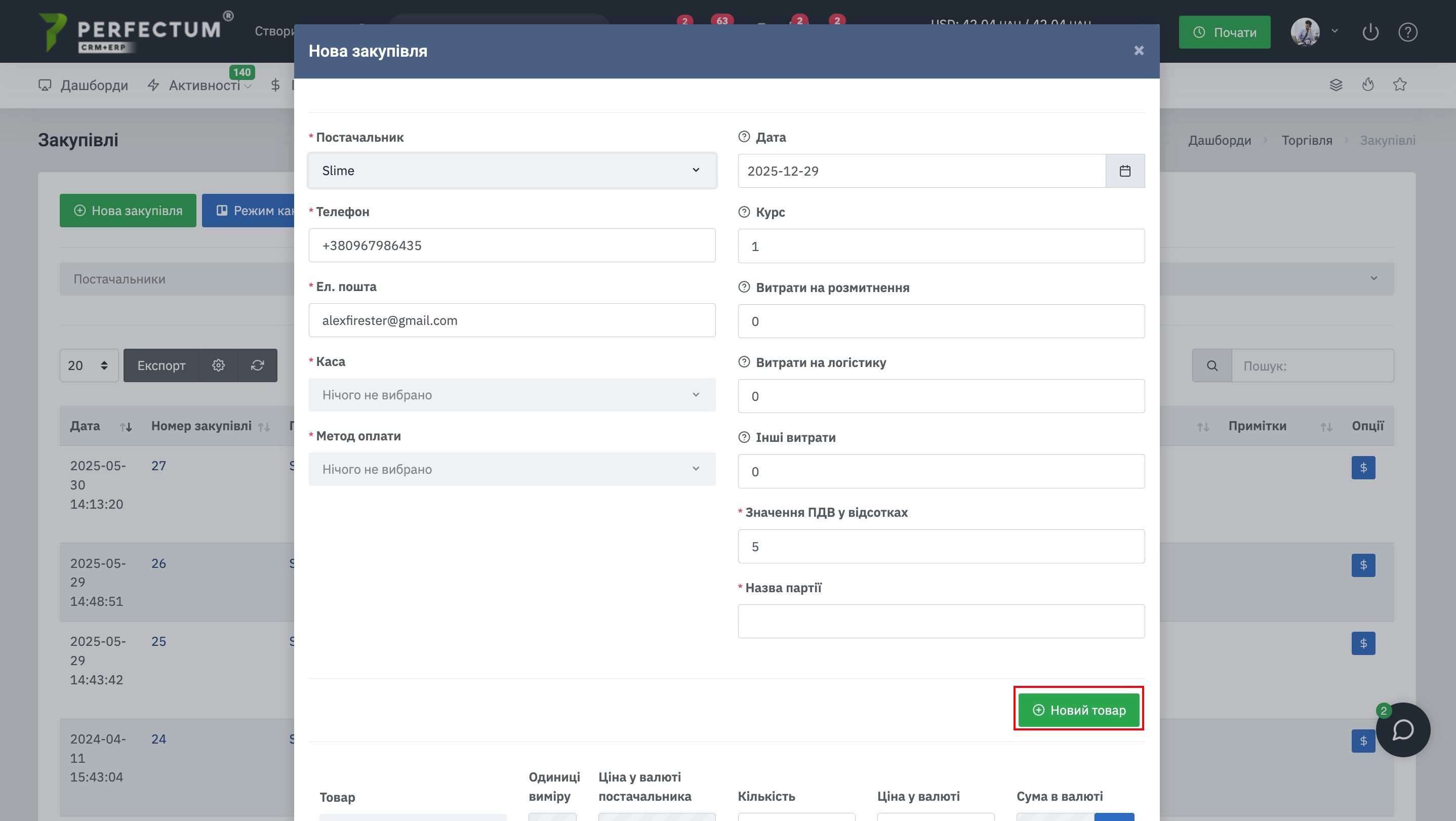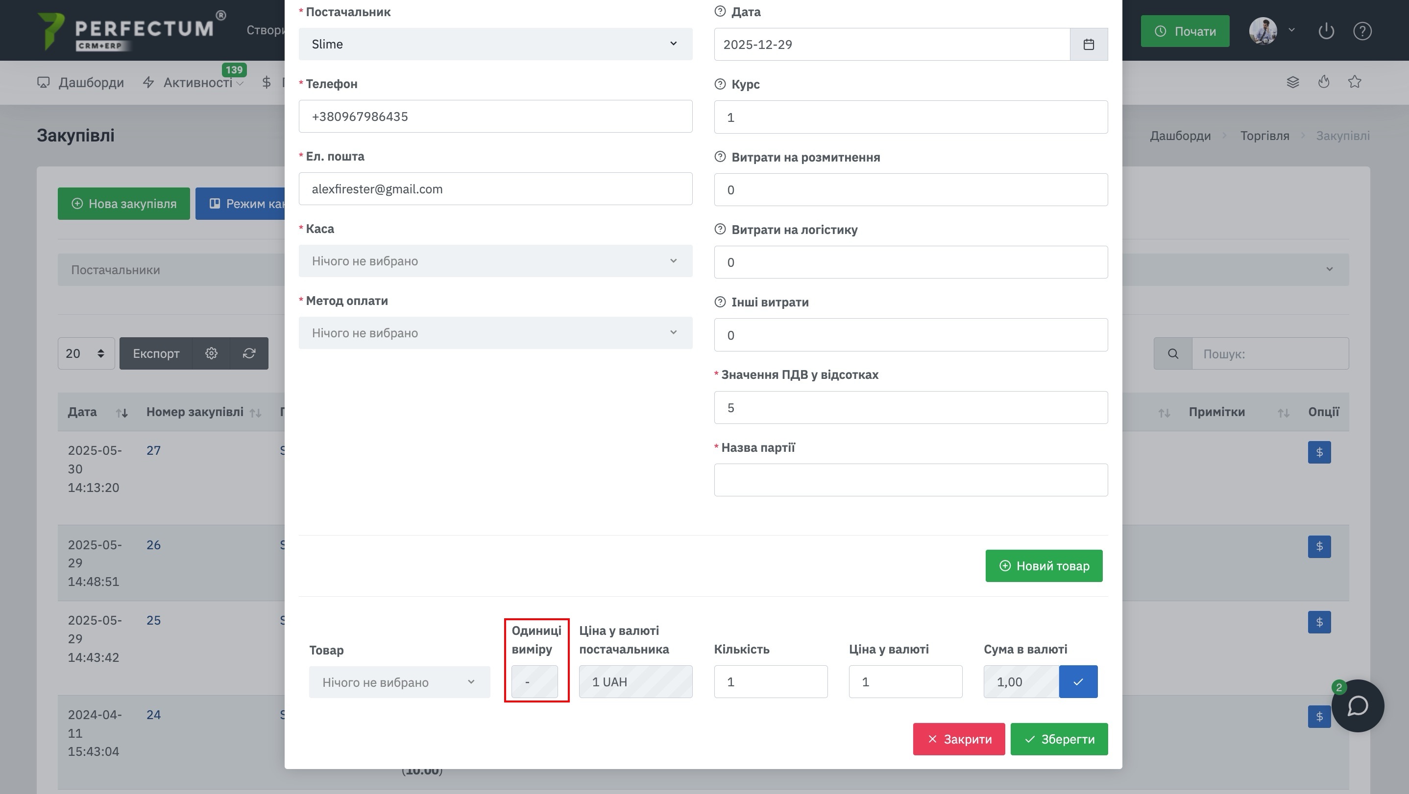 Додано нову можливість вносити товар у систему CRM безпосередньо при створенні закупівлі у постачальника.