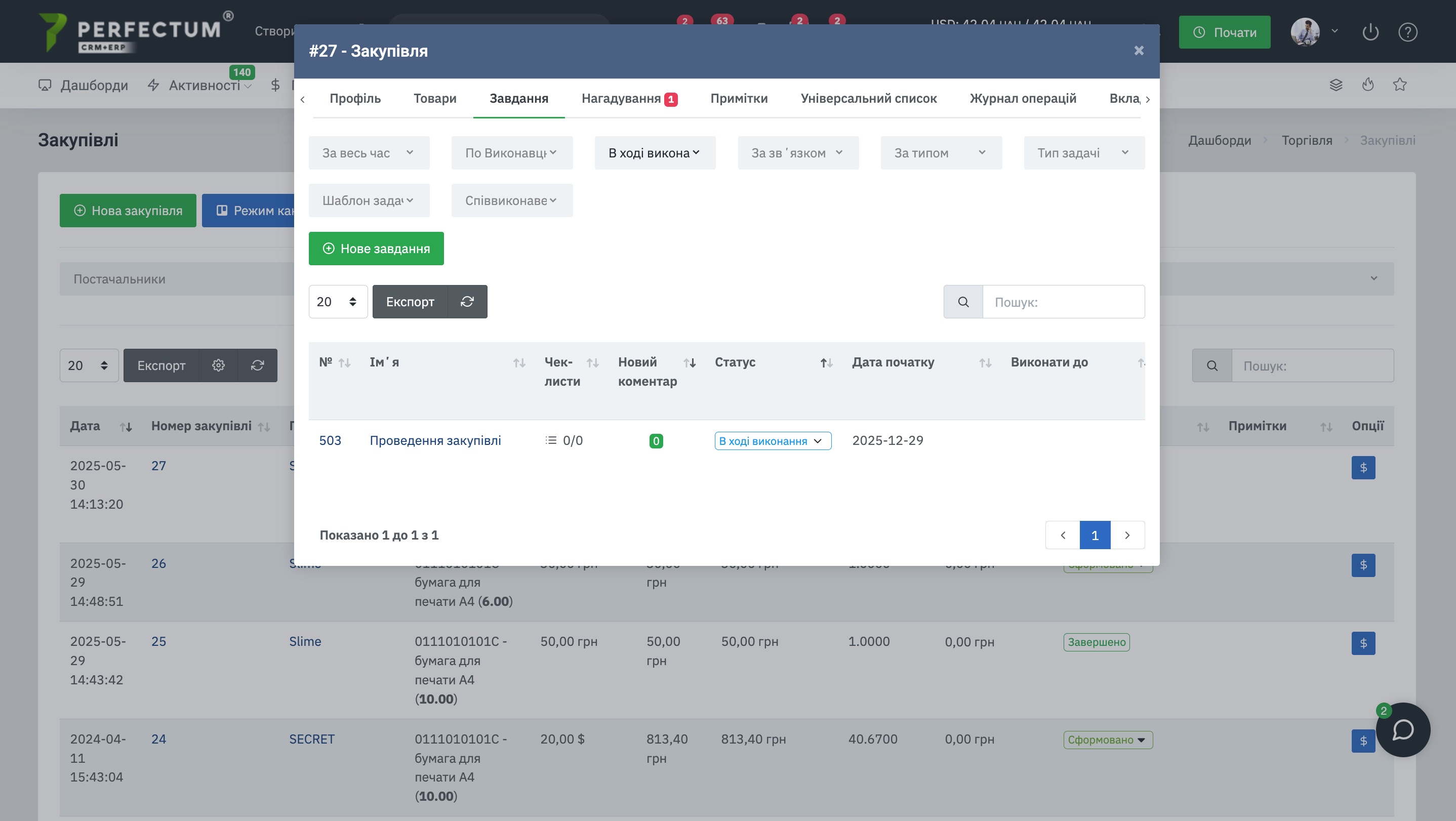 Командою Perfectum CRM + ERP випущено оновлену версію модуля «Постачальники + Закупівлі» 2.6. В оновленні було виконано 8 чек-боксів змін та покращень.